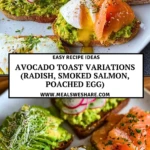 Avocado toast is best served immediately after assembling to keep the toast crisp and the toppings fresh. Each variation—radish, smoked salmon, and poached egg—offers something different, so it’s fun to make a trio platter if you’re serving a small group.
