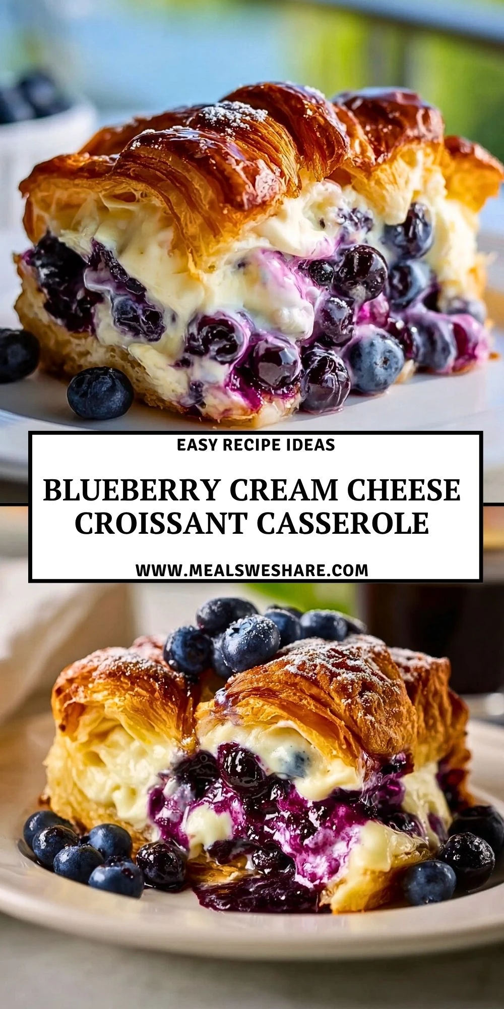 Keywords: blueberry cream cheese croissant casserole, croissant breakfast casserole, blueberry breakfast bake, easy brunch casserole, sweet breakfast casserole, holiday brunch recipe, breakfast ideas, easy recipe, food ideas
