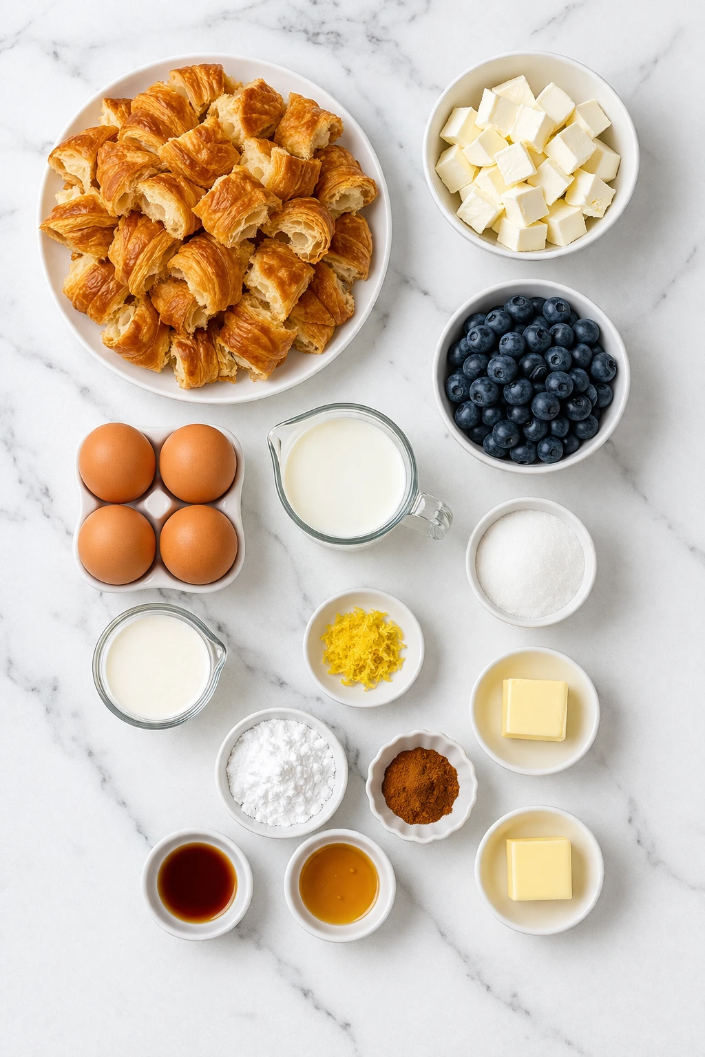Ingredients for the Blueberry Cream Cheese Croissant Casserole