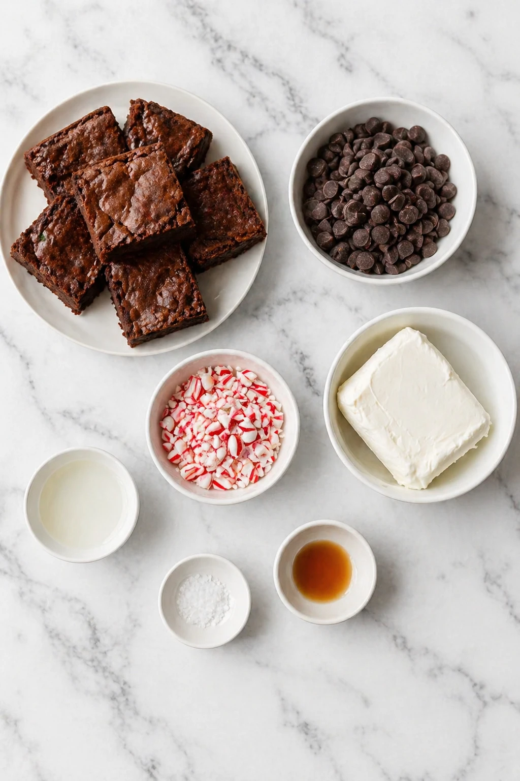 The ingredients are simple, but each one helps create the right flavor, texture, and festive finish. Choose a moist brownie base, good melting chocolate, and fresh peppermint candy for the best results.
