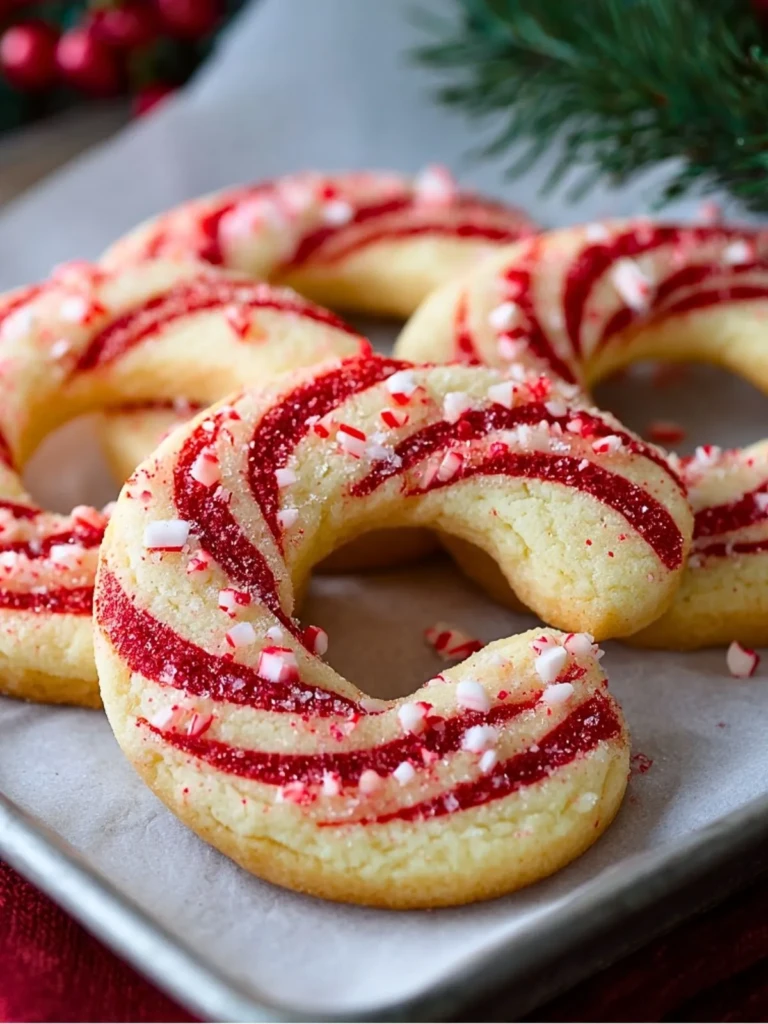 Candy Cane Cookies are best served at room temperature, where their texture is soft and buttery with a satisfying peppermint crunch on top. They make a perfect addition to any holiday cookie tray and look stunning on a dessert table.