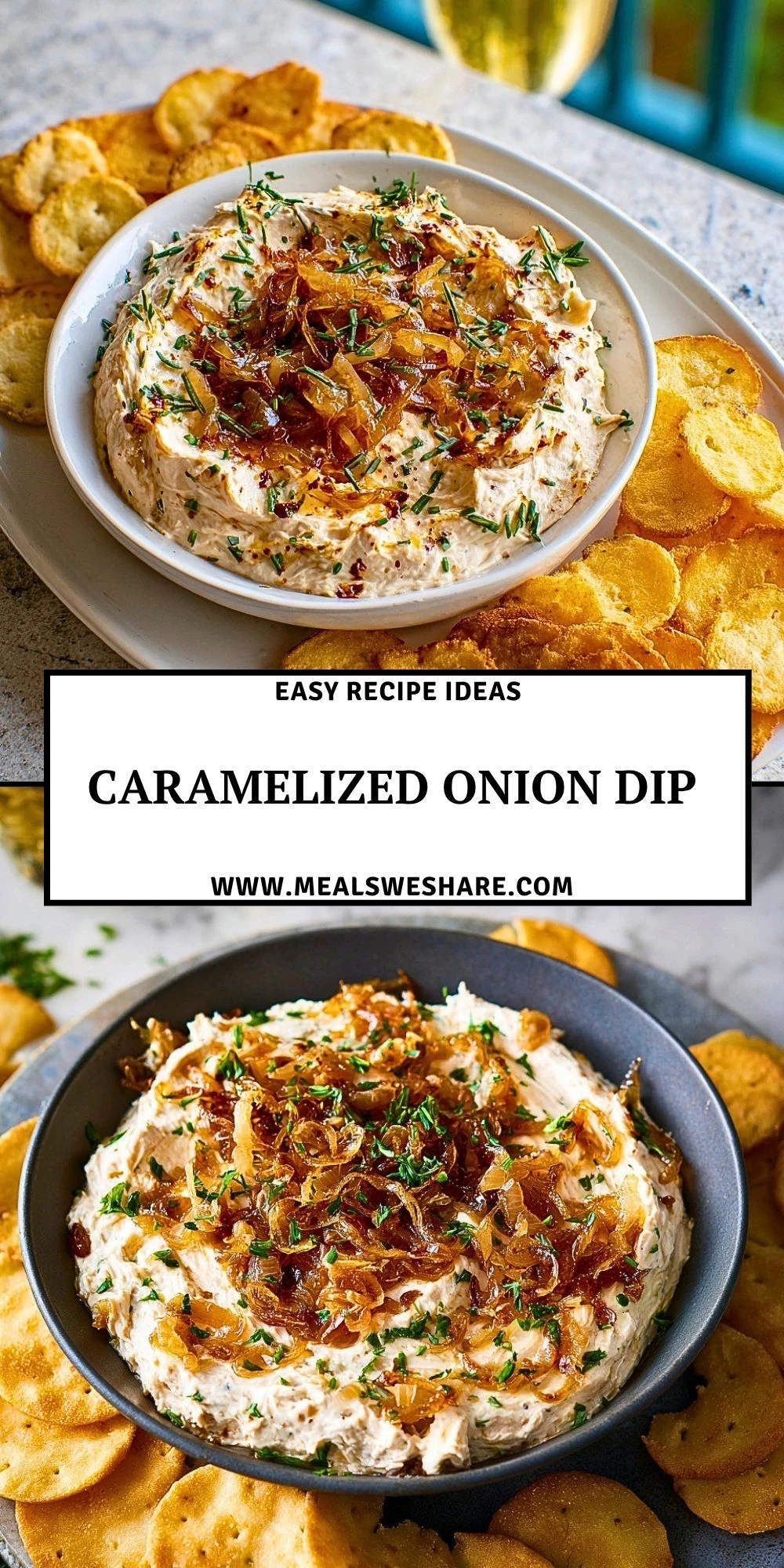 Keywords: caramelized onion dip, onion dip, easy appetizer, party dip, game day snack, make-ahead dip, food ideas, appetizer ideas