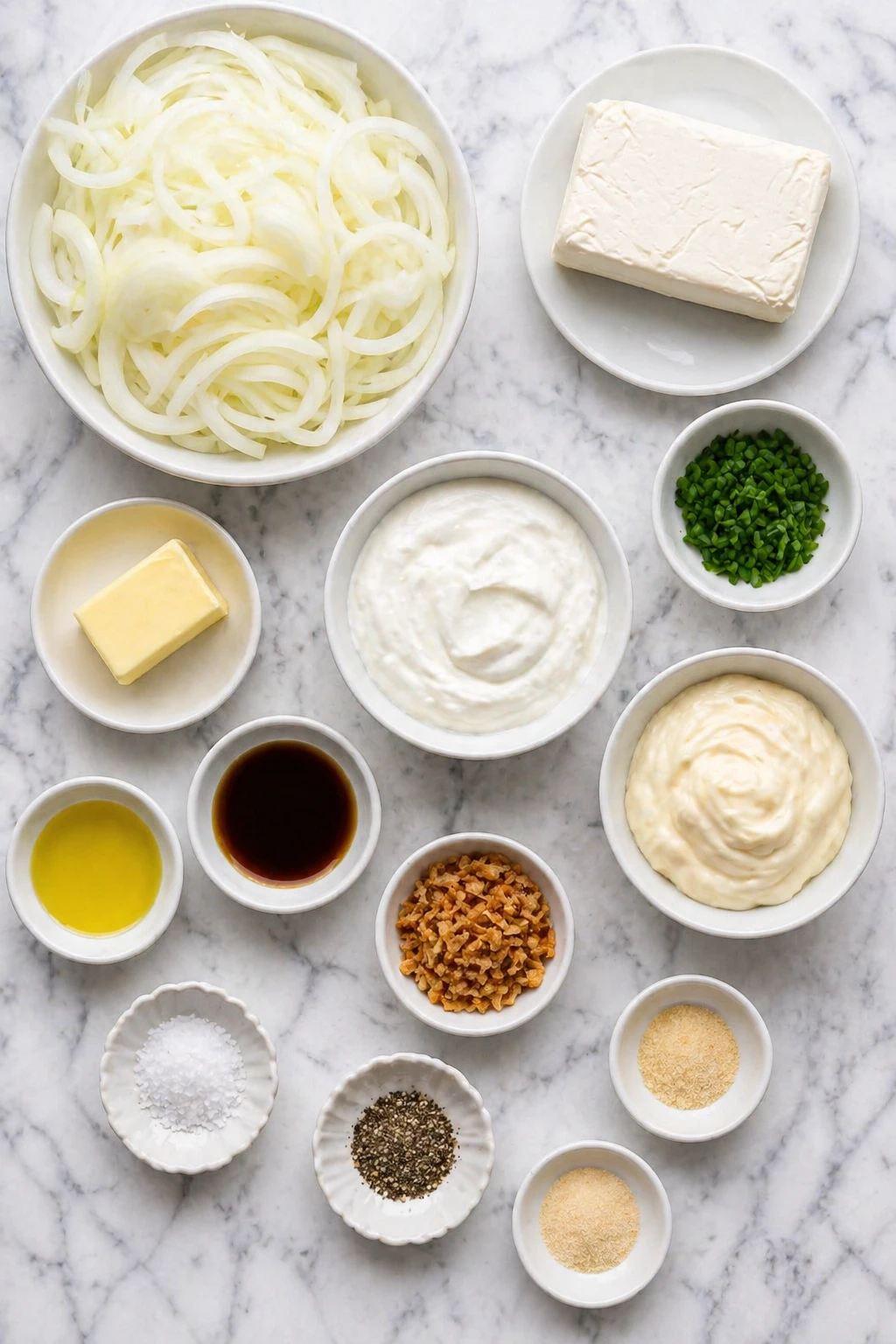 Each ingredient has a job in this dip, and keeping the balance right is what makes it taste creamy, savory, and full of slow-cooked onion flavor.