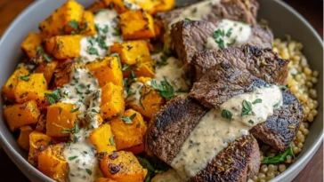 Savory Butternut Squash & Garlic Herb Steak Bowls