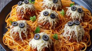 Spooky Spaghetti & Cheesy Monster Meatballs