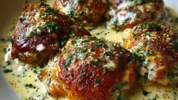 Bobby Flay Chicken Thighs with Creamy Garlic Sauce