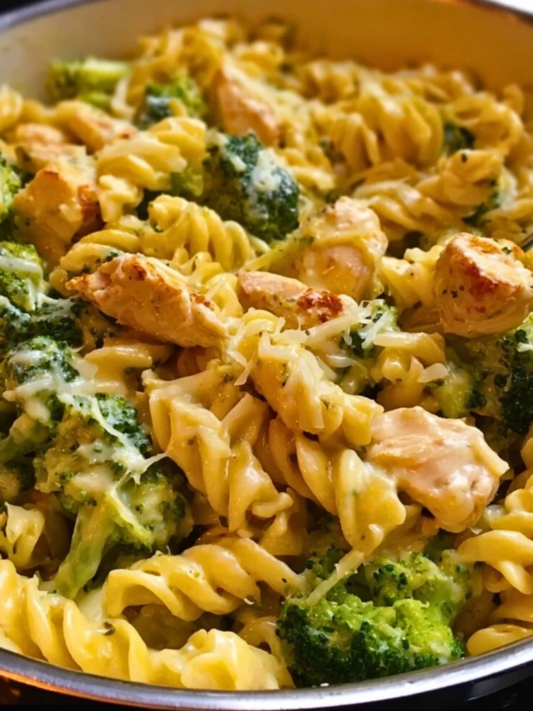 Keywords: easy recipe, chicken pasta, broccoli pasta, one pan dinner, cheesy pasta, quick dinner, creamy pasta, dinner ideas