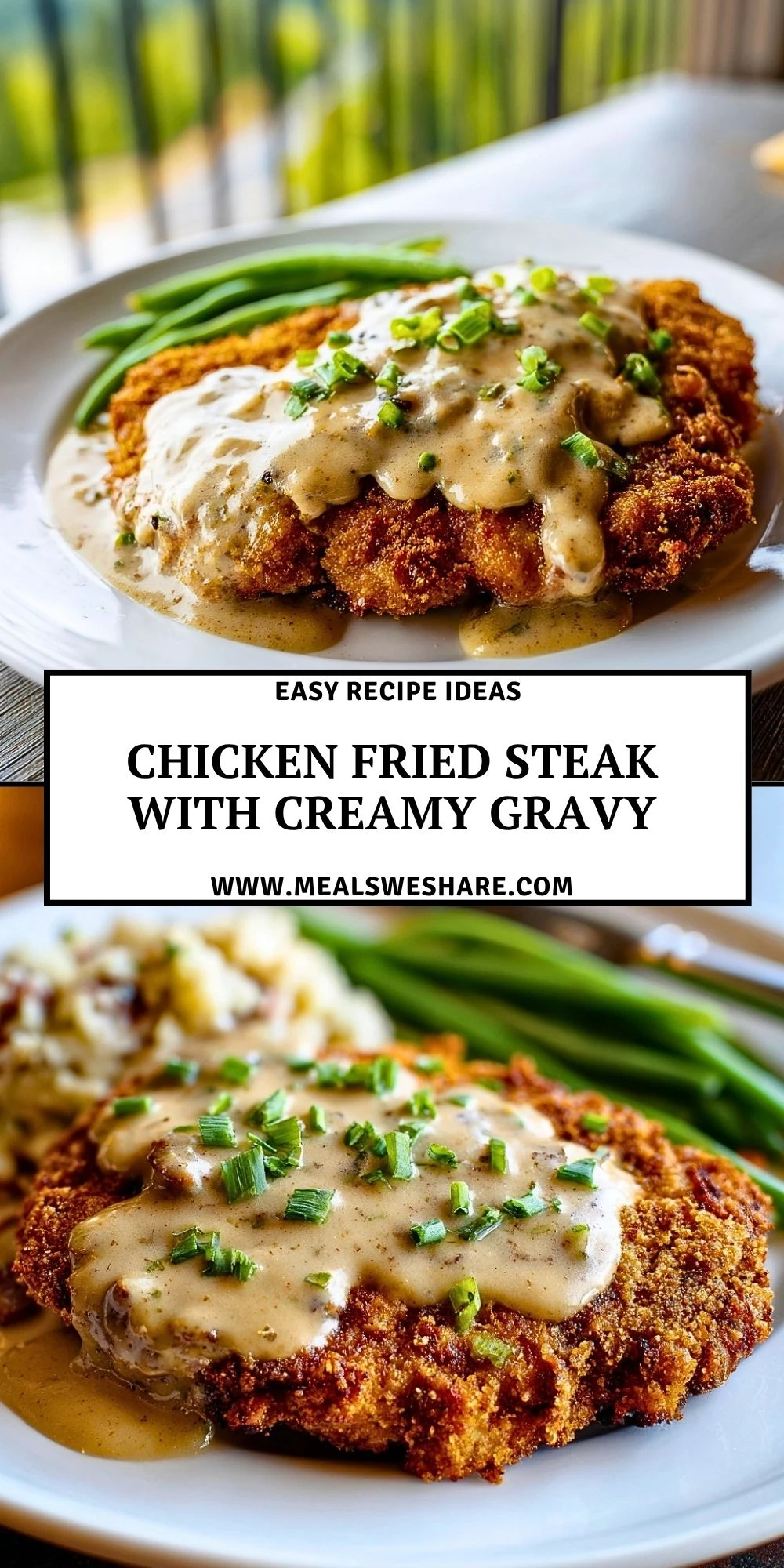 Keywords: Chicken Fried Steak with Creamy Gravy, chicken fried steak, country fried steak, creamy gravy, Southern dinner, comfort food dinner, easy dinner recipe, dinner ideas