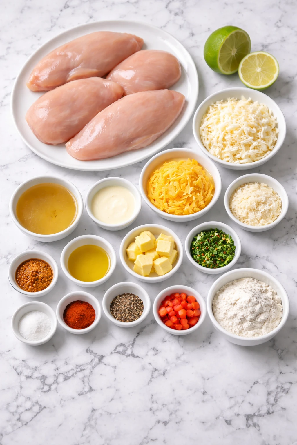- All-purpose flour – Whisked into the butter to create a roux that thickens the sauce so it clings beautifully to the chicken.