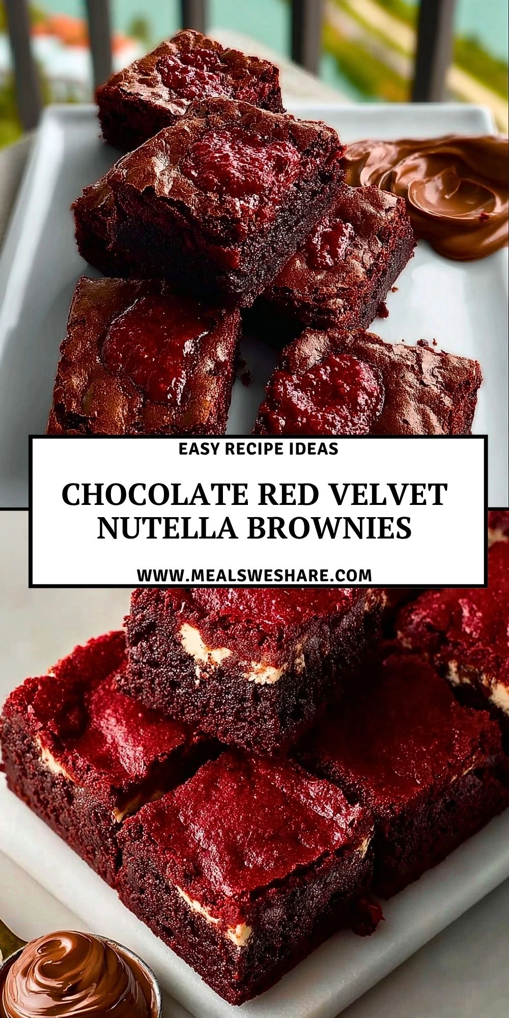 Keywords: chocolate red velvet Nutella brownies, red velvet brownies, Nutella brownies, fudgy brownies, easy dessert recipe, chocolate dessert ideas