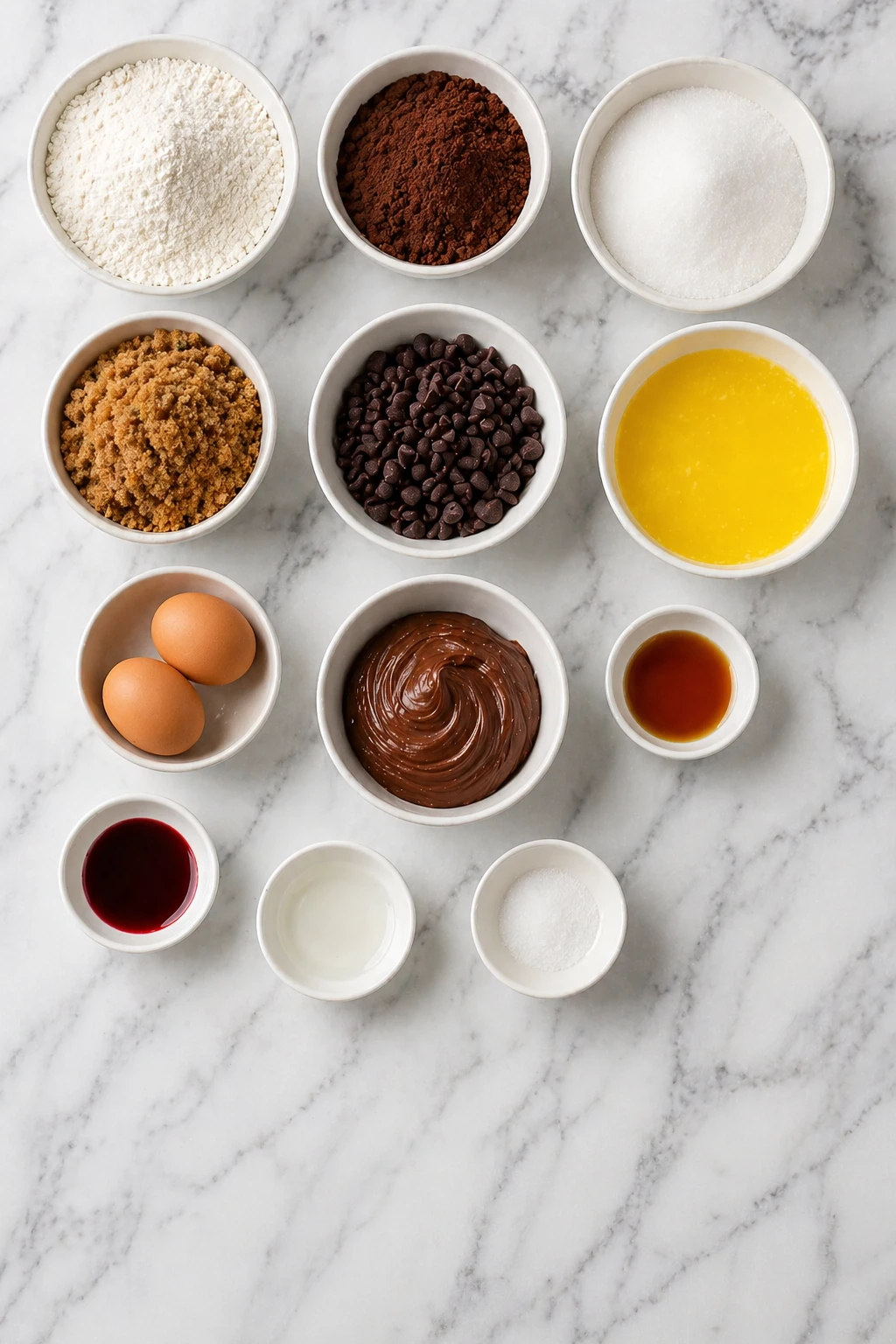 Ingredients for the Chocolate Red Velvet Nutella Brownies