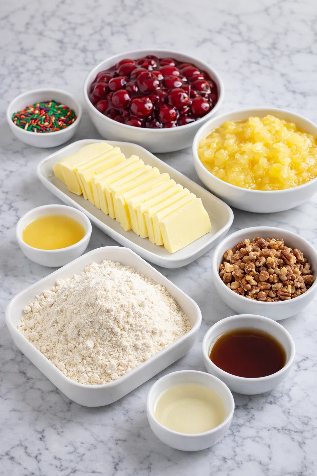 Each ingredient in Christmas Dump Cake has a job to do, and together they create a dessert that feels rich, fruity, and festive without a lot of work.