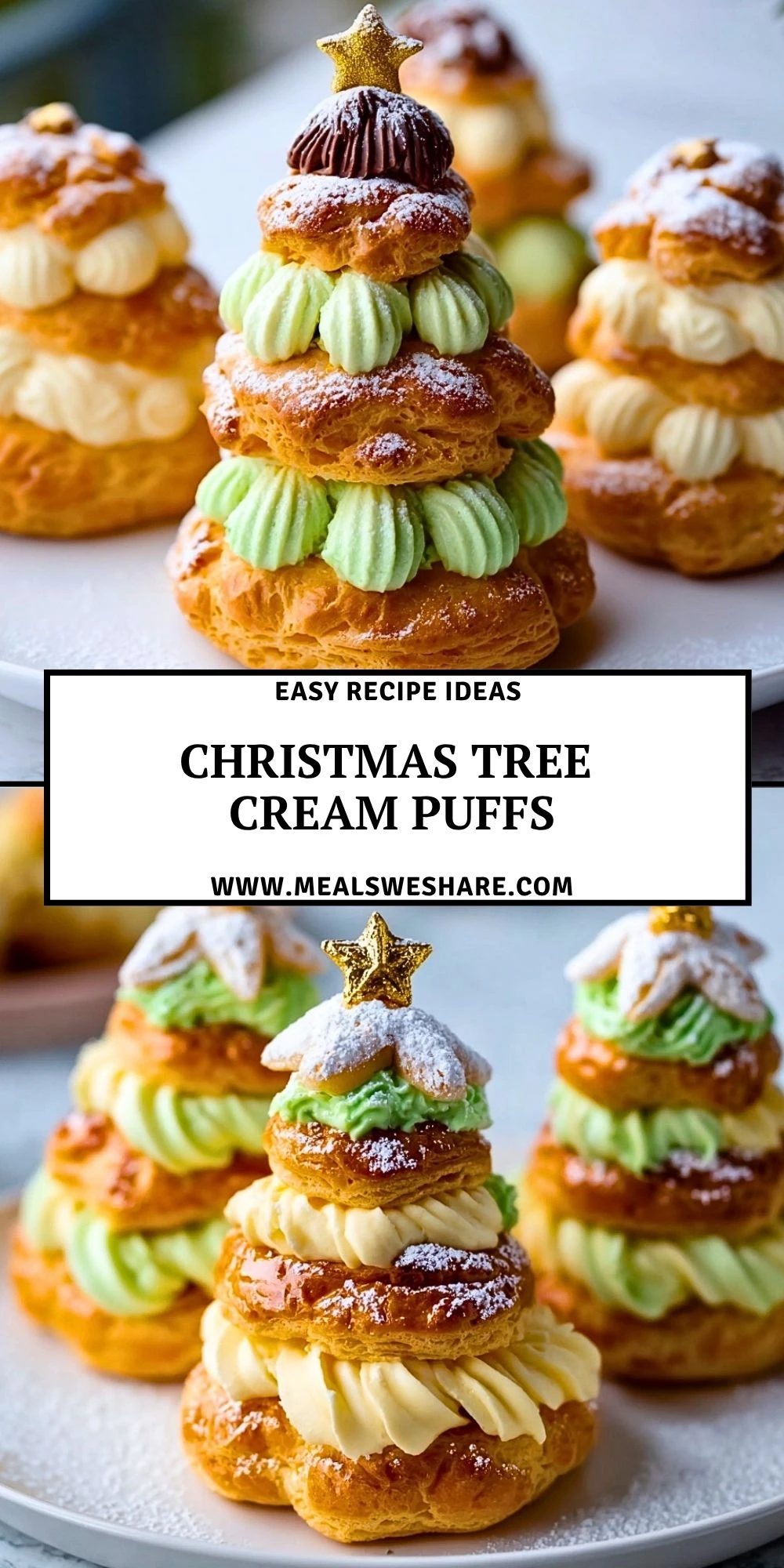 Keywords: Christmas Tree Cream Puffs, cream puffs, holiday dessert, easy recipe, Christmas dessert, choux pastry, festive dessert, party food ideas, holiday food ideas
