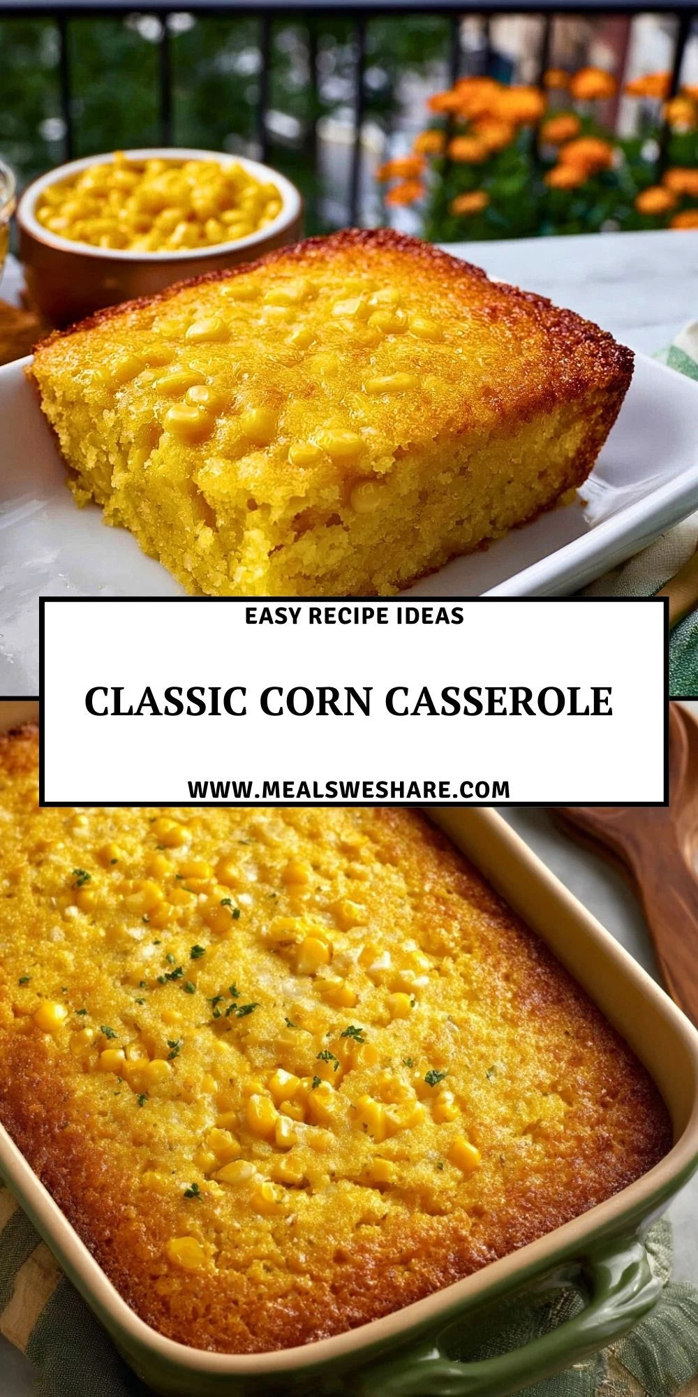 Golden, buttery, and irresistibly moist, this Classic Corn Casserole is the ultimate easy recipe for your holiday table or a cozy weeknight side. It’s made with pantry staples and takes only 5 minutes to prep! With its sweet-savory flavor and tender texture, it’s one of those food ideas that fit anywhere—from quick breakfast casseroles to hearty dinner ideas. If you’re looking for comfort food that never fails, this easy dinner side is always a hit.