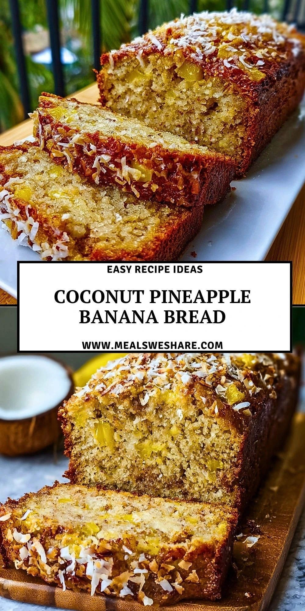 Keywords: coconut pineapple banana bread, banana bread, pineapple banana bread, coconut banana bread, quick breakfast, easy recipe, breakfast ideas, food ideas, tropical banana bread