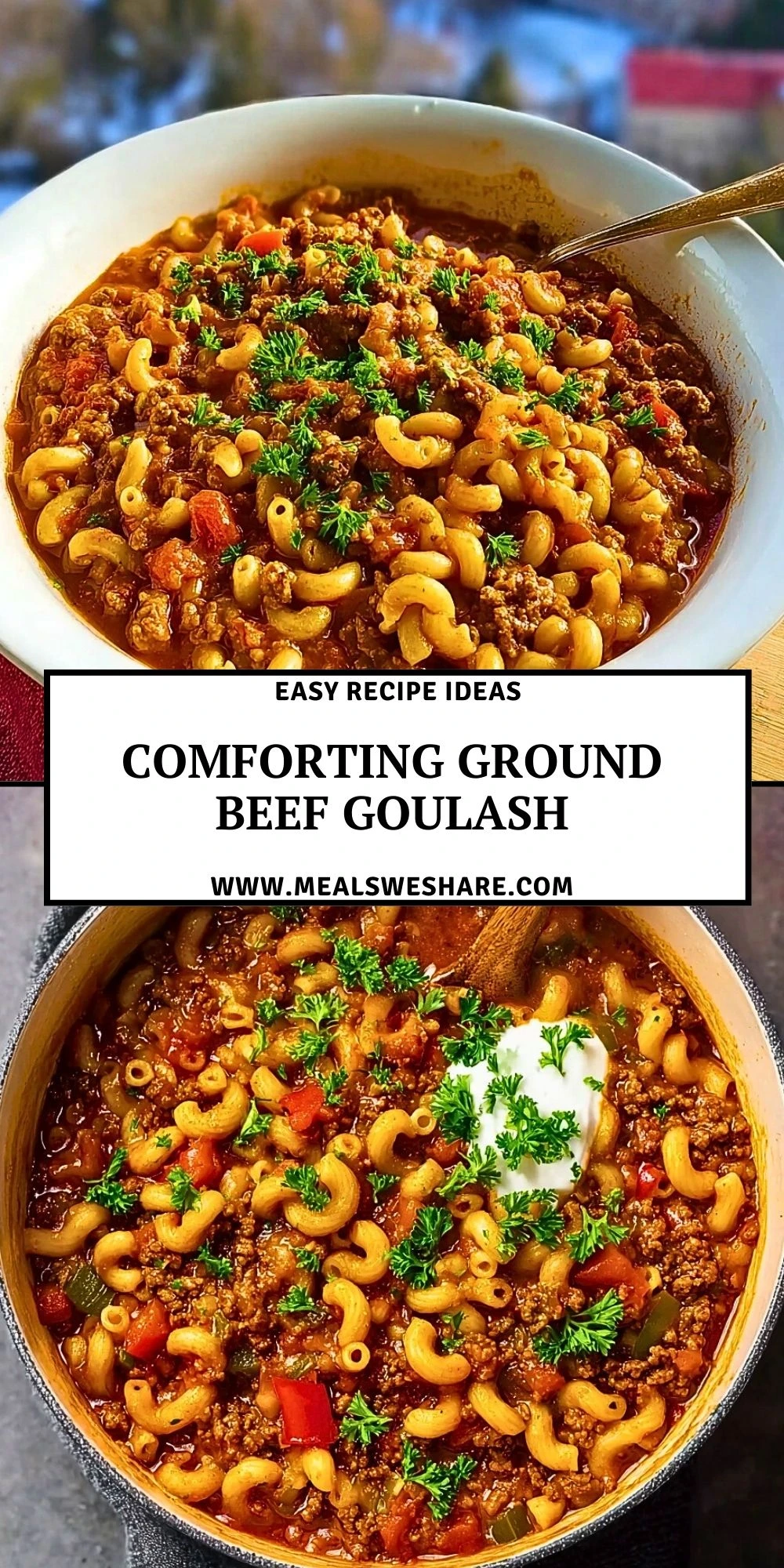 Keywords: comforting ground beef goulash, ground beef pasta, one pot dinner, easy recipe, quick dinner, dinner ideas, family meal, cozy pasta
