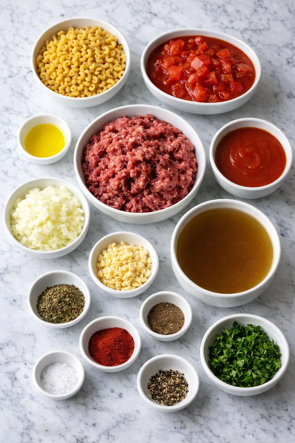 Every ingredient in Comforting Ground Beef Goulash plays an important role in building a rich, balanced, and satisfying meal. The beauty of this dish is that it relies on simple staples that work together beautifully.