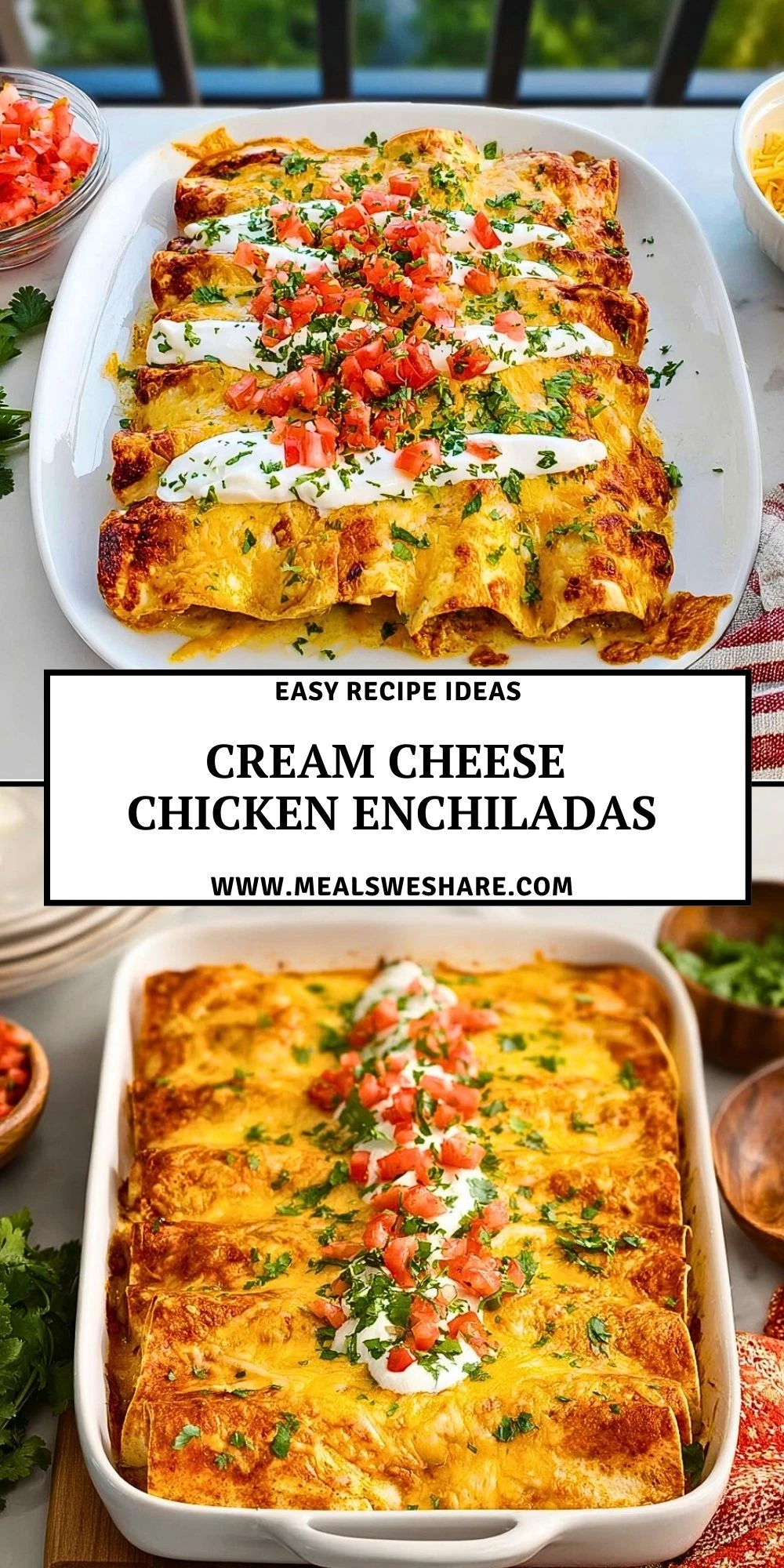 Keywords: cream cheese chicken enchiladas, easy dinner, quick dinner, family dinner, baked enchiladas, chicken dinner ideas, cheesy enchiladas, comfort food