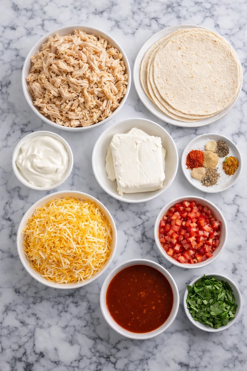 Ingredients for the Cream Cheese Chicken Enchiladas