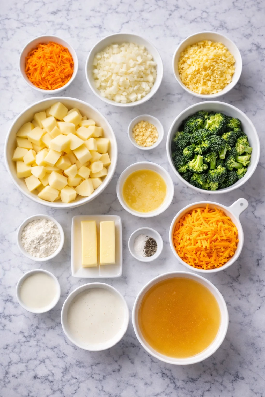Ingredients for the Creamy Crockpot Cheesy Potato Broccoli Soup