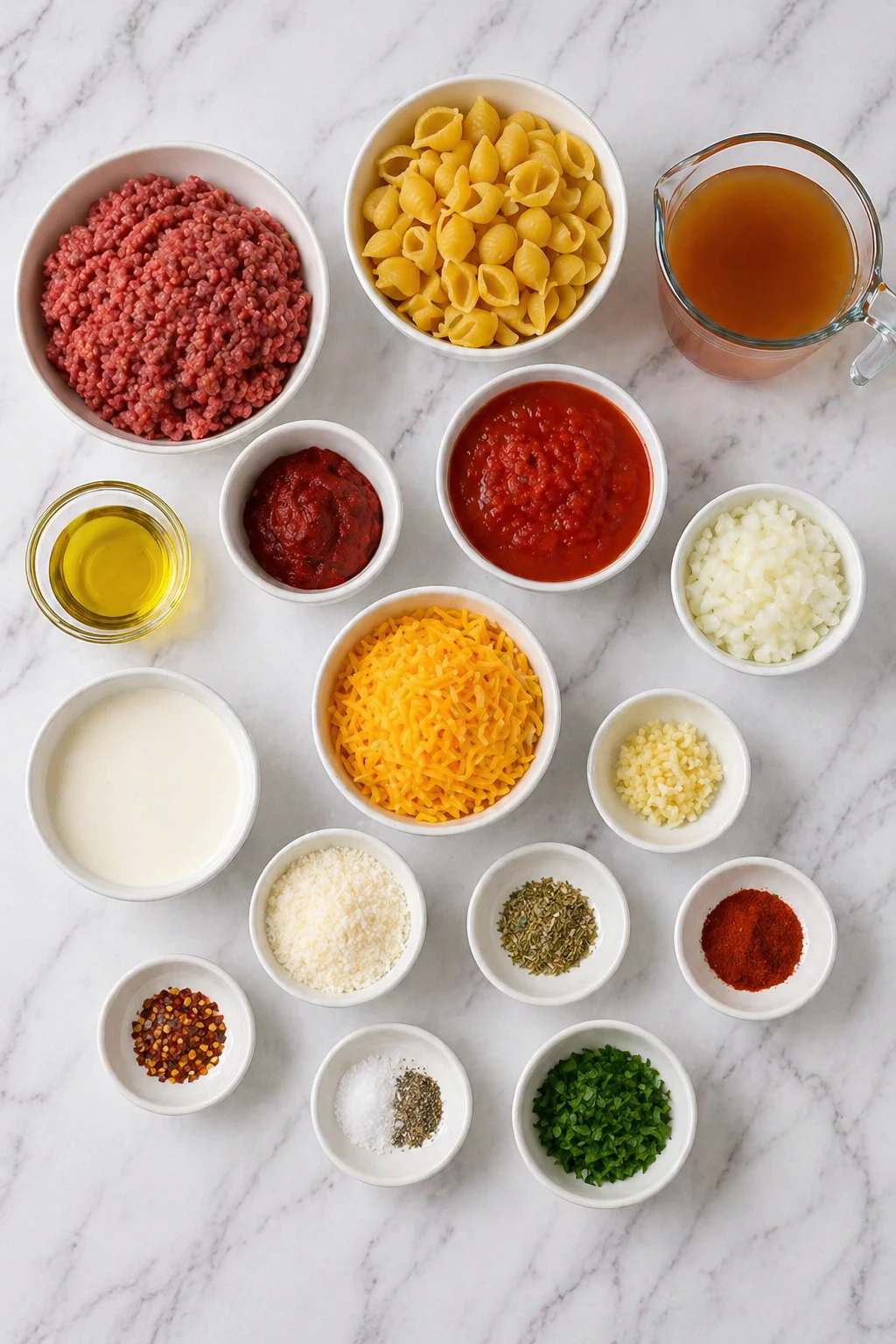 Ingredients for the Creamy One-Pot Beef & Shells