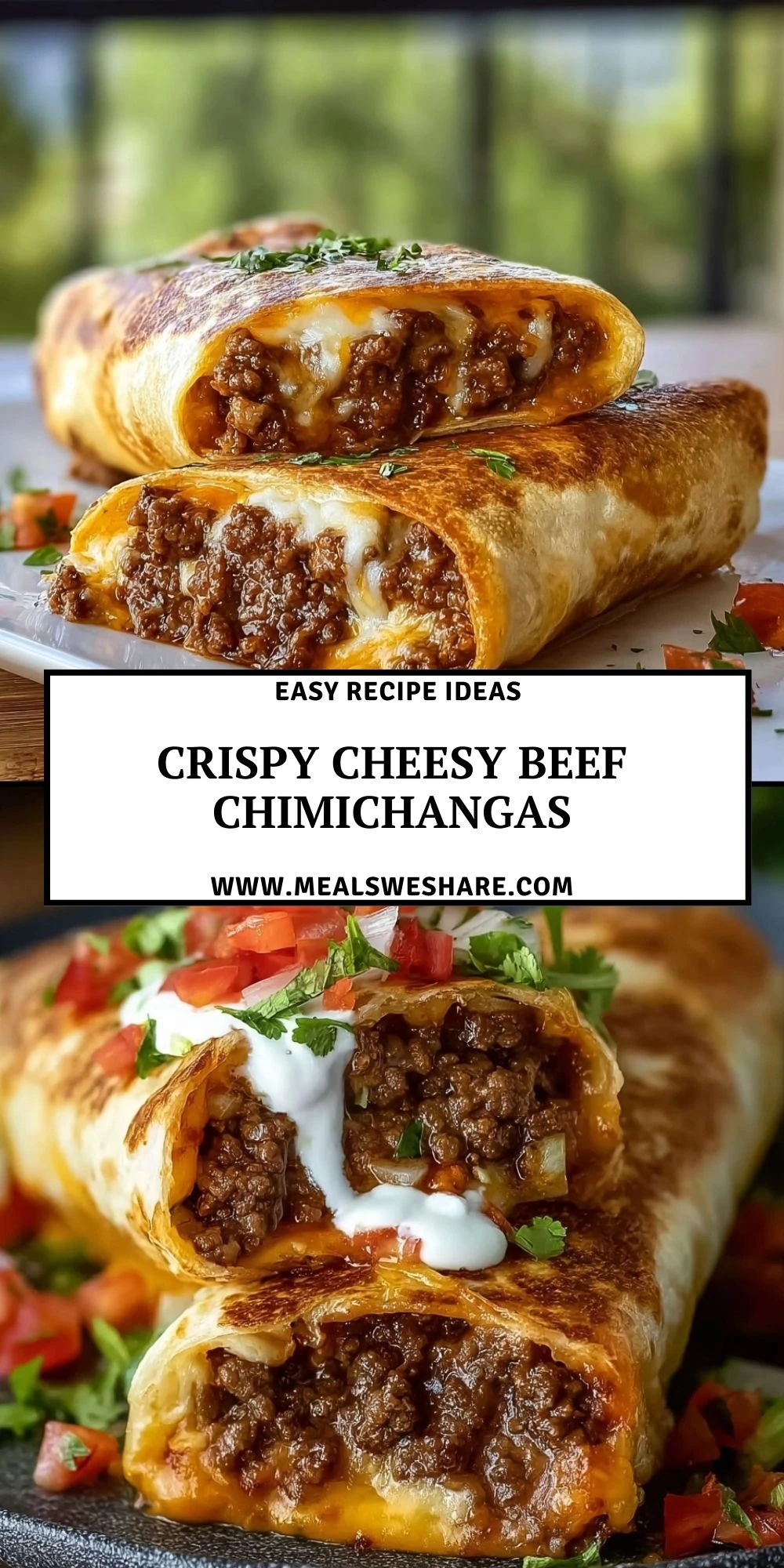 Keywords: crispy cheesy beef chimichangas, easy dinner, quick dinner, weeknight meal, Mexican-inspired, ground beef recipe, freezer friendly