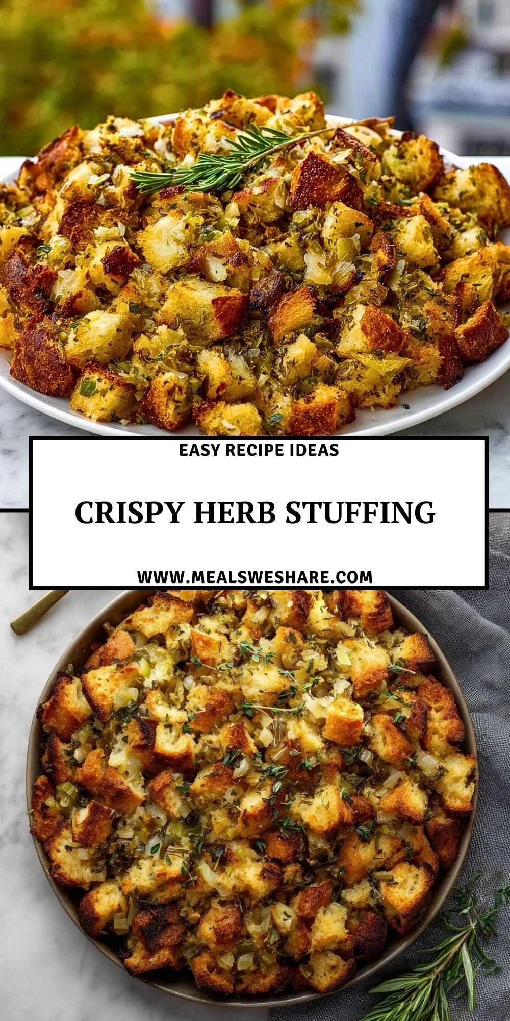 Whether you’re preparing for Thanksgiving or just want a warm, satisfying side dish, Crispy Herb Stuffing is a comforting classic that always delivers. It’s easy to make, customizable, and turns simple ingredients into something deeply satisfying. For more cozy recipes to round out your menu, don’t forget to check out my collection on Meals We Share.