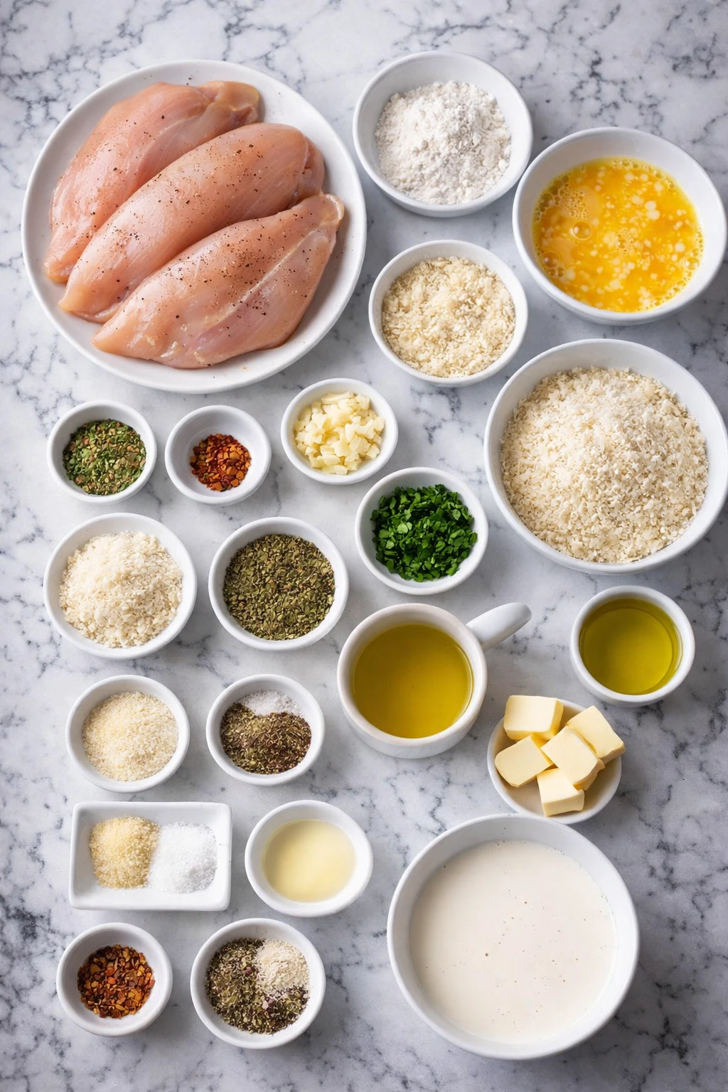 Boneless, skinless chicken breasts – The star of the dish. They’re lean, mild, and perfect for pounding into thin cutlets that cook quickly and evenly.