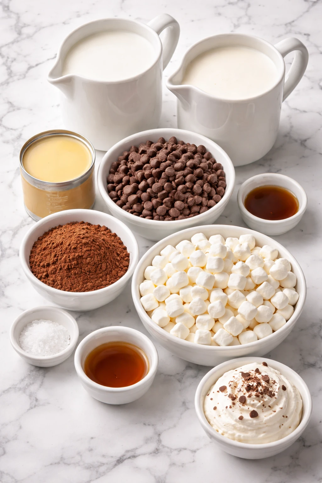 Mini marshmallows are optional for serving, but they add that classic hot chocolate finish and make each mug more fun and inviting.