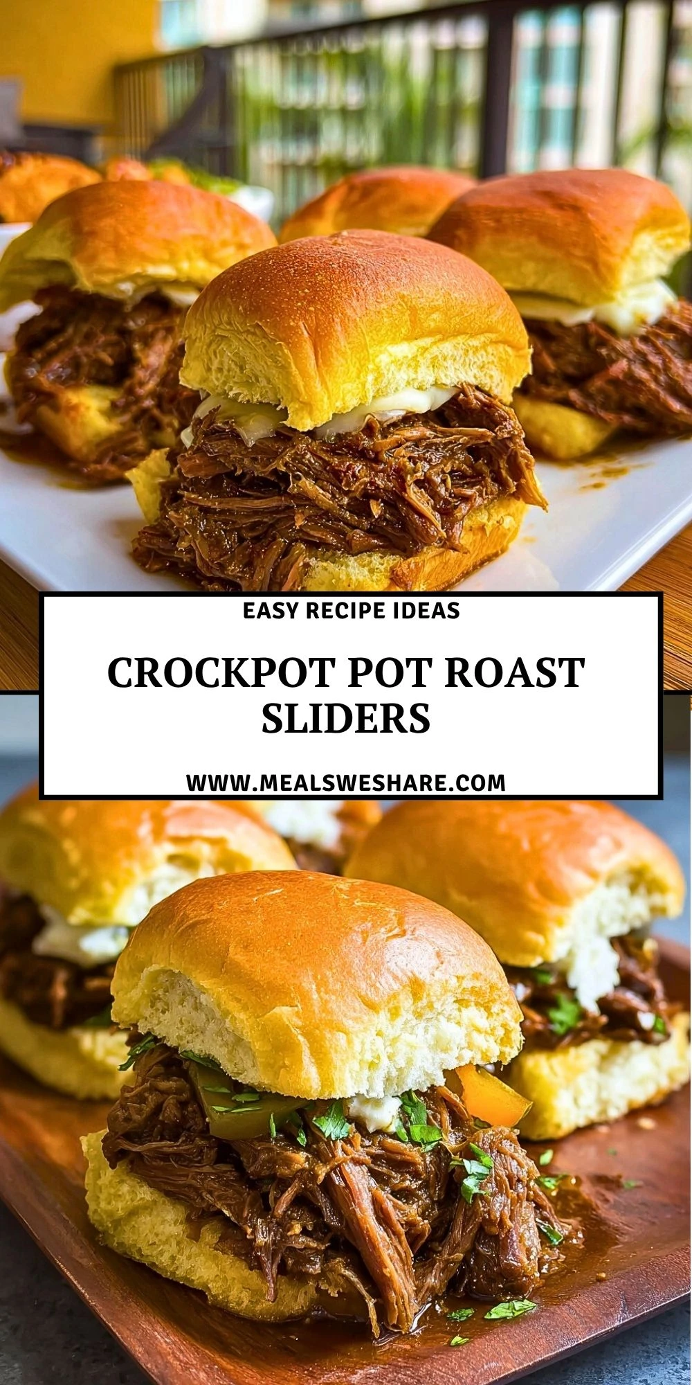 Keywords: crockpot pot roast sliders, pot roast sliders, slow cooker beef sliders, easy dinner, dinner ideas, party sandwiches, comfort food, game day recipe