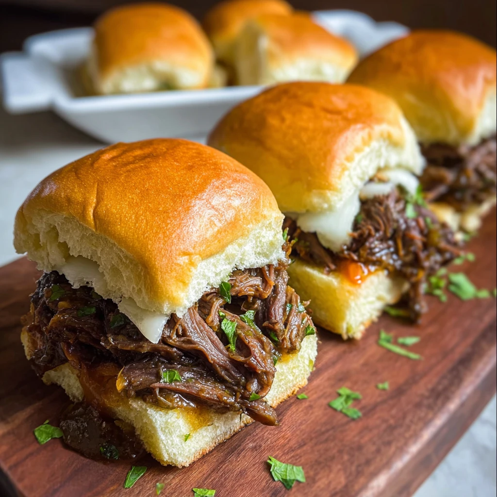 For storing, keep the shredded beef separate from the buns if possible. The meat can be refrigerated in an airtight container for up to 4 days. Reheat it gently with a little cooking liquid so it stays moist. If the sliders are already assembled, store leftovers in the refrigerator and reheat in the oven until warmed through.