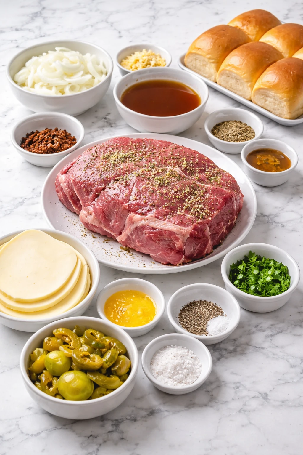 What makes them especially appealing is how little hands-on work they need. The crockpot does the heavy lifting, turning a well-seasoned roast into juicy shredded beef that tucks beautifully into buttery buns with melty cheese and tangy peppers.