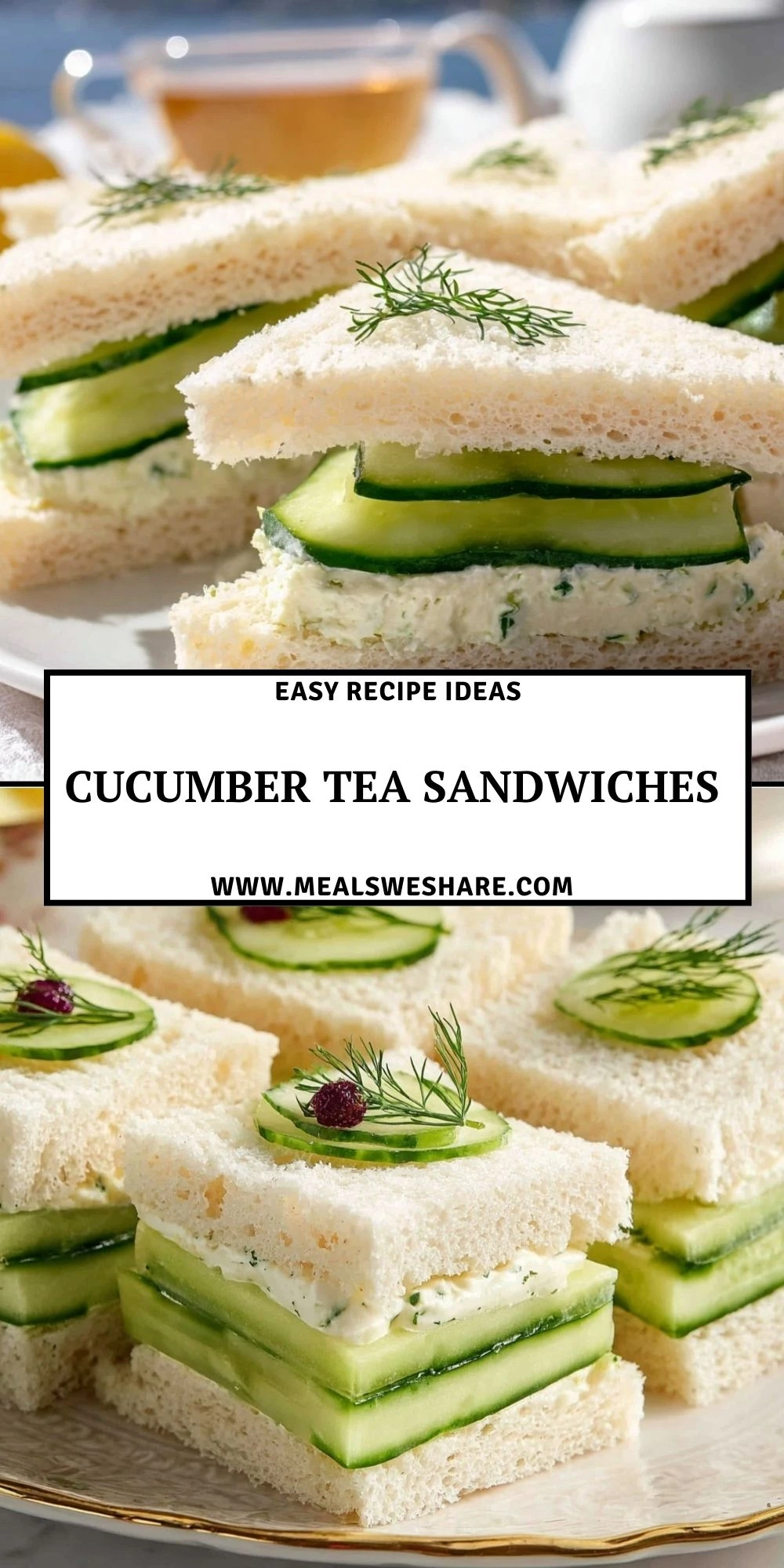 Cucumber tea sandwiches are best served well-chilled and freshly cut, when the bread is soft and the cucumbers are still crisp. A standard batch using a full loaf of bread typically makes about 16 small tea sandwiches, which will comfortably serve 4–6 people as part of a larger spread.