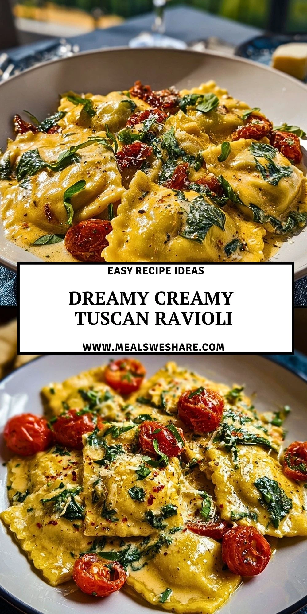 Keywords: dreamy creamy tuscan ravioli, creamy ravioli recipe, easy dinner, pasta dinner, italian dinner ideas, comfort food, quick dinner, cheesy ravioli, creamy pasta