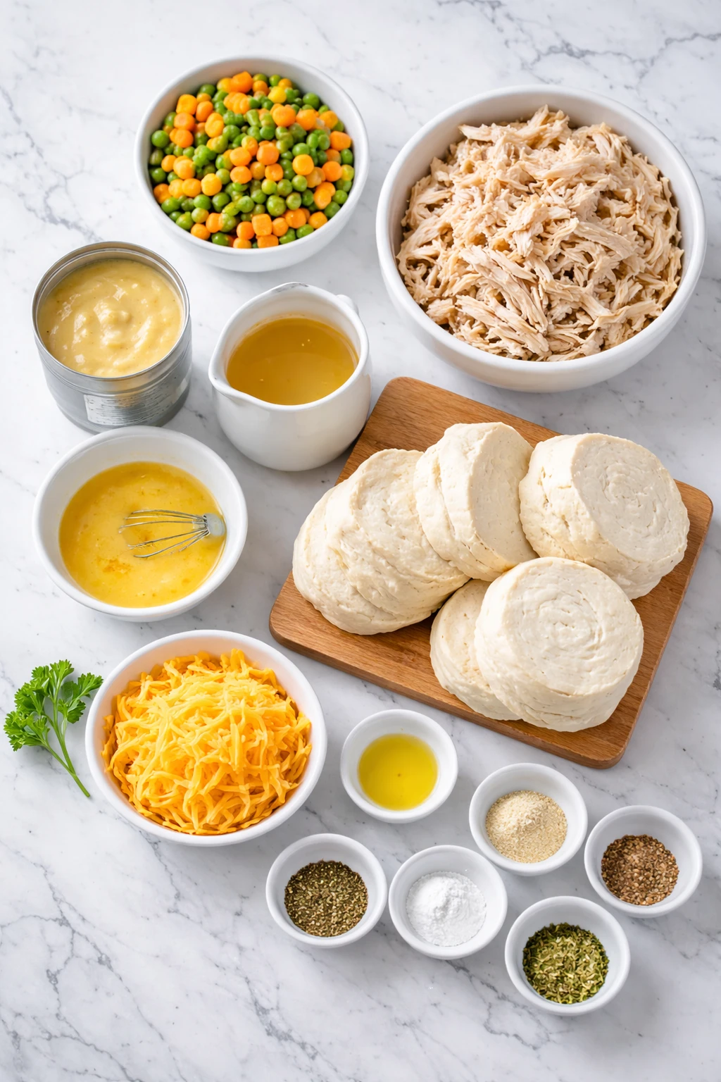 - Refrigerated biscuit dough – Pressed into a muffin tin to create the buttery, tender “crust” that holds the filling.