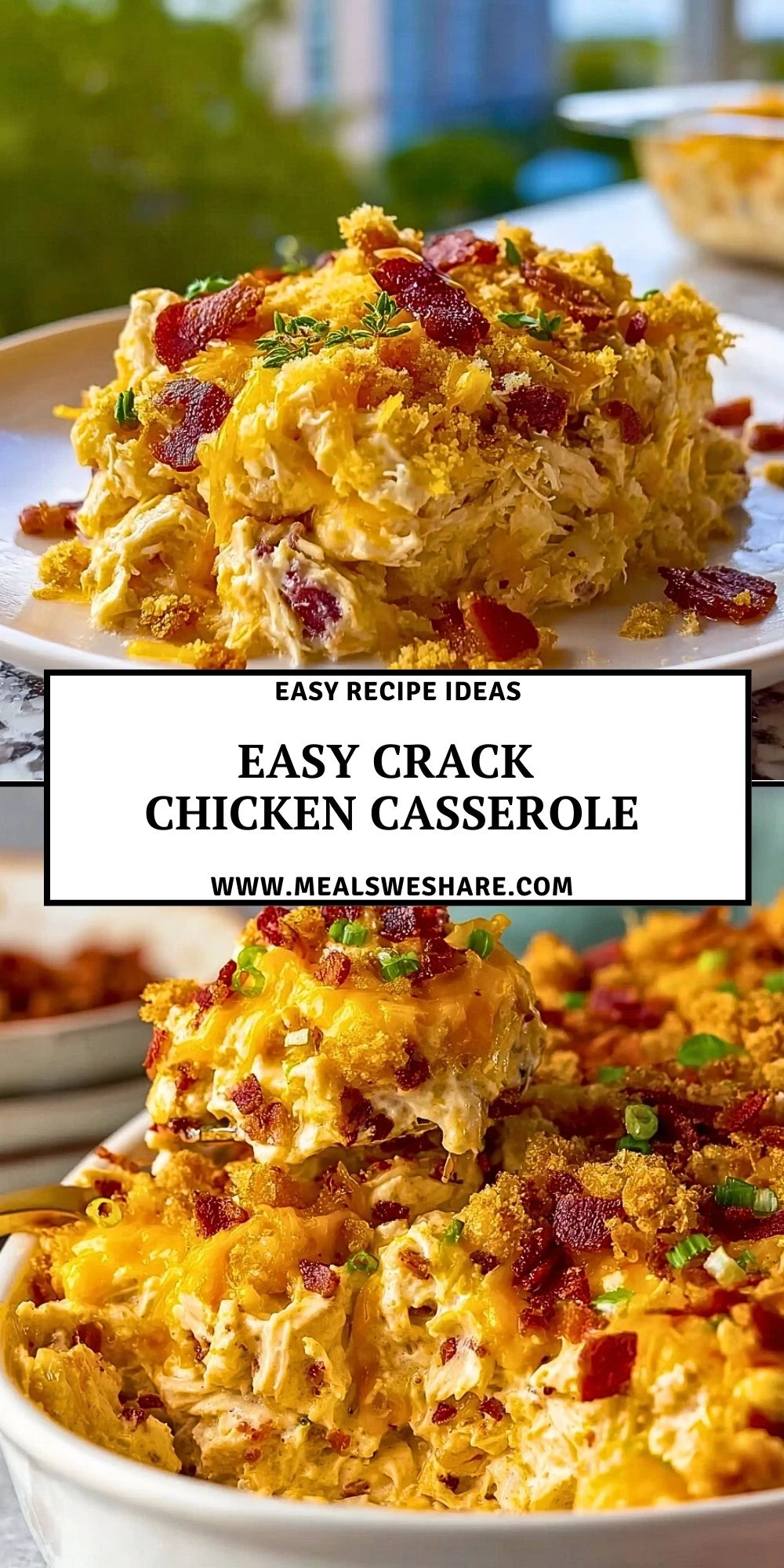 Easy Crack Chicken Casserole feeds about 6 people generously, making it a great option for family dinner or a small gathering. Serve it hot straight from the oven while the topping is still crisp and the cheese is perfectly melted.