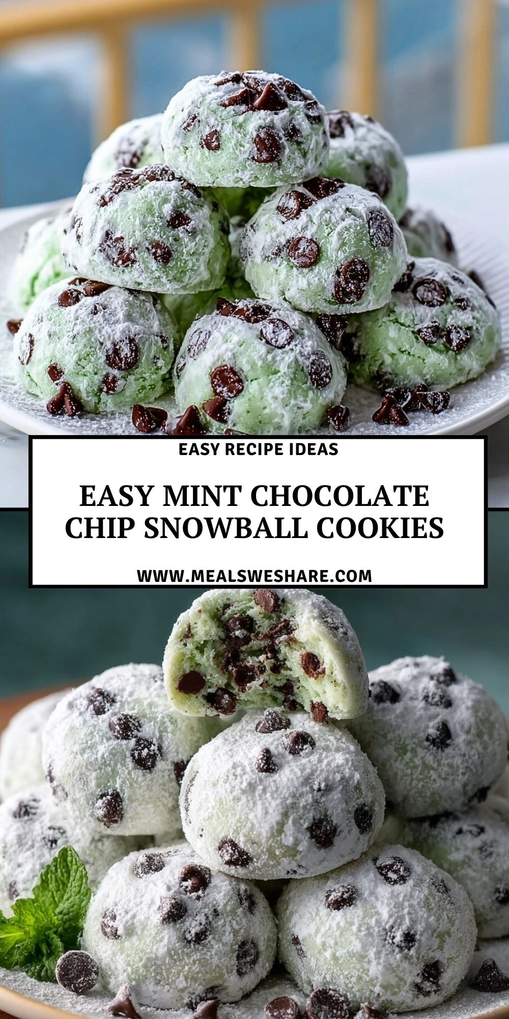 Easy Mint Chocolate Chip Snowball Cookies