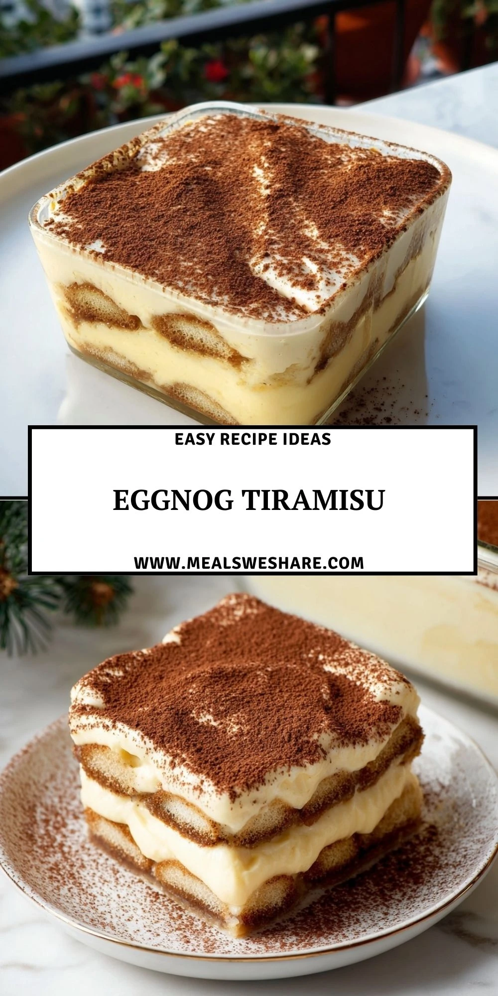 If you’re serving Eggnog Tiramisu at a party, balance the sweetness with a few savory appetizers—think cheese boards, crispy crostini, or warm, herby snacks. The contrast keeps guests going back for “just one more” bite.