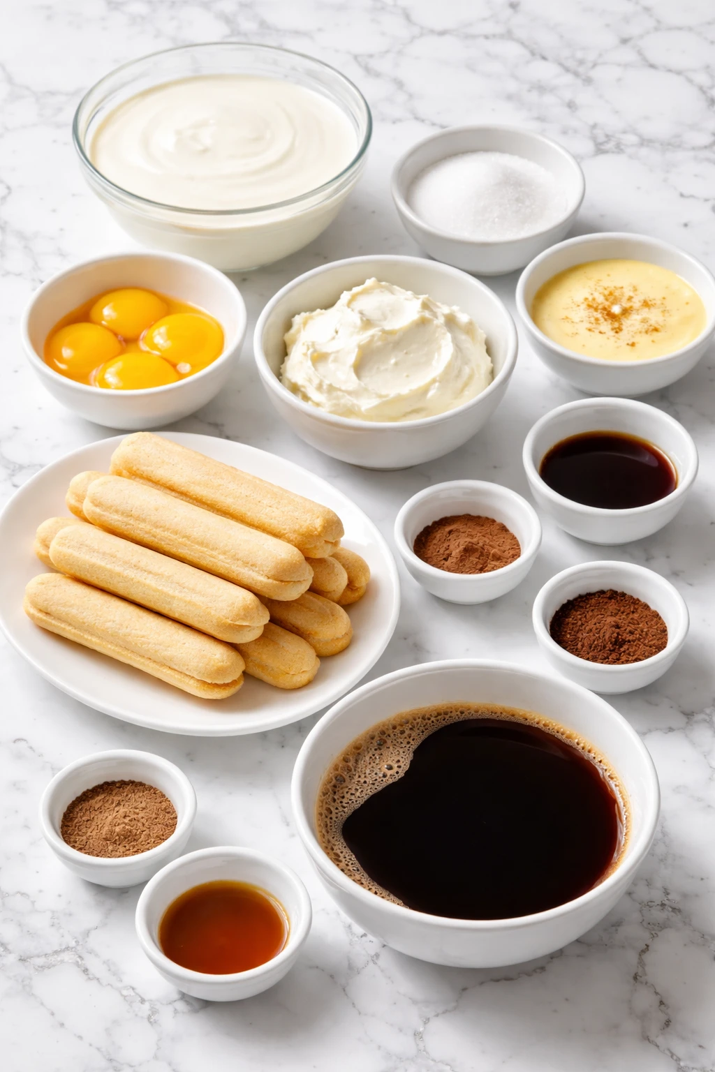 - Egg yolks – Create a silky custard base that gives the filling its classic tiramisu richness.