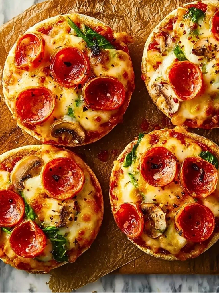 These pizzas are not only ridiculously easy to make, but they’re also super versatile. Whether you’re feeding picky eaters or looking to clean out the fridge, this recipe delivers. The English muffin base gets perfectly crispy on the edges while staying chewy in the center, a texture that rivals traditional crusts. Plus, it’s totally freezer-friendly, making it a dream for meal preppers.