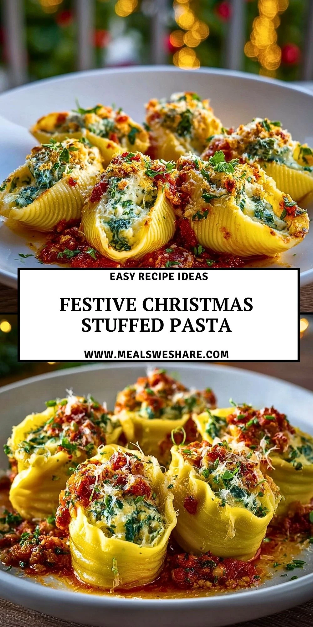Keywords: festive christmas stuffed pasta, easy dinner, holiday dinner ideas, cheesy stuffed pasta, meatless dinner, spinach ricotta pasta, food ideas