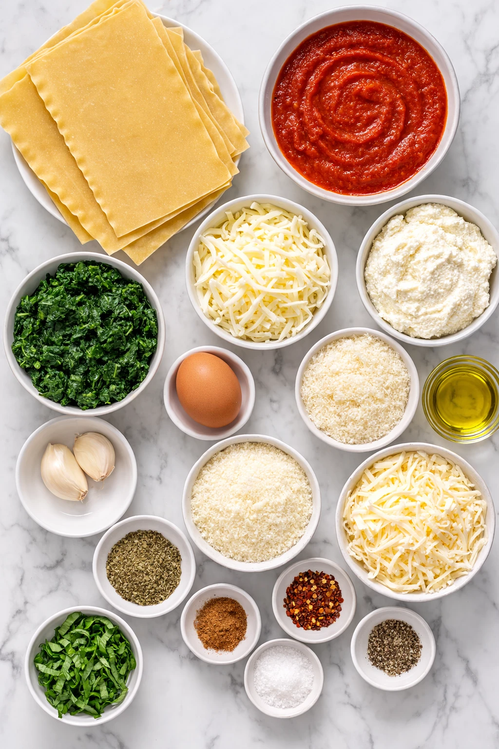 - Fresh lasagna sheets or dried lasagna noodles – Form the base of the spirals and hold all that cheesy filling in place.