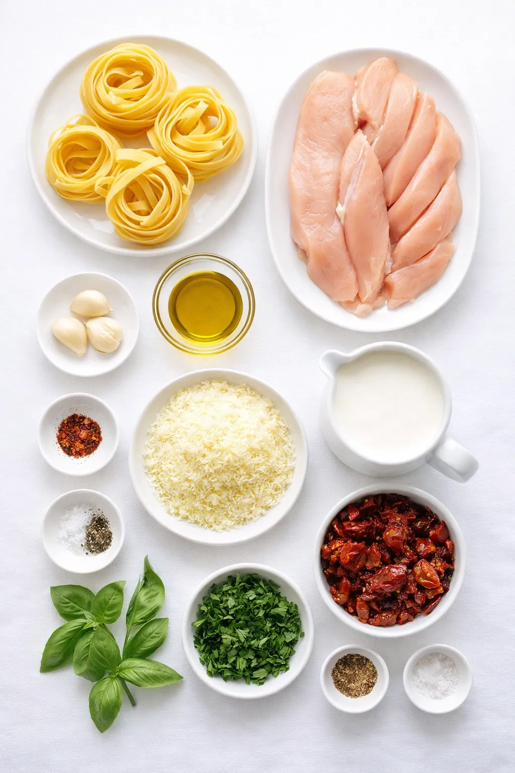 Ingredients for the Fettuccine Alfredo with Chicken and Sundried Tomatoes