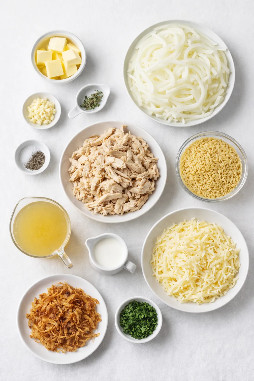 Craving a cozy, comforting dinner? This French Onion Chicken Orzo Casserole is your answer. With caramelized onions, creamy orzo, juicy shredded chicken, and golden Gruyere cheese on top, it’s the perfect easy dinner idea for busy nights or when you need comfort food fast. Ideal for meal prep, easy recipes, and family food ideas.