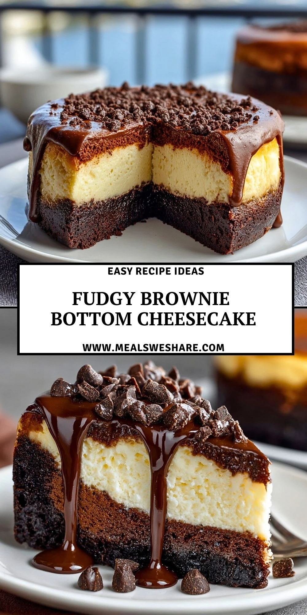 Keywords: fudgy brownie bottom cheesecake, brownie cheesecake, chocolate cheesecake, easy dessert, make-ahead dessert, holiday dessert, cheesecake recipe, brownie base cheesecake, food ideas, dinner party dessert