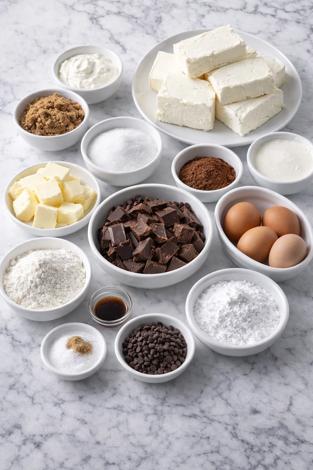 Ingredients for the Fudgy Brownie Bottom Cheesecake