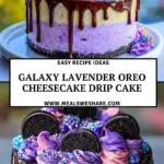Keywords: Oreo cheesecake, galaxy cake, lavender cheesecake, no-bake dessert, birthday cake, drip cake
