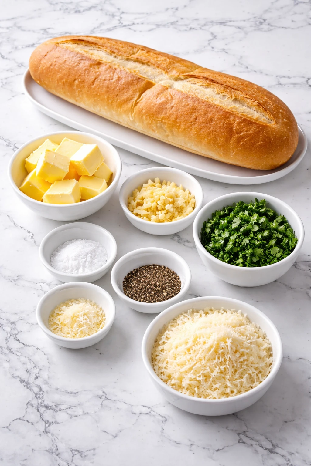 You do not need a long shopping list to make Garlic Bread taste incredible. Each ingredient has a clear role, and together they create the classic buttery, garlicky finish everyone expects.
