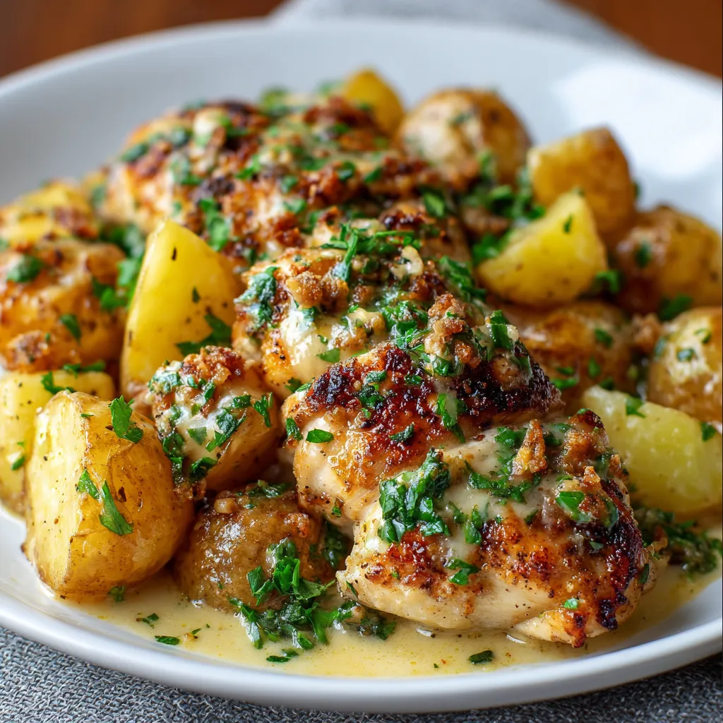 Golden, crispy chicken infused with garlic and herbs, served with buttery roasted potatoes and a creamy parmesan sauce — this Garlic Parmesan Chicken and Potatoes recipe brings comforting flavor and elegance to the table without fuss.