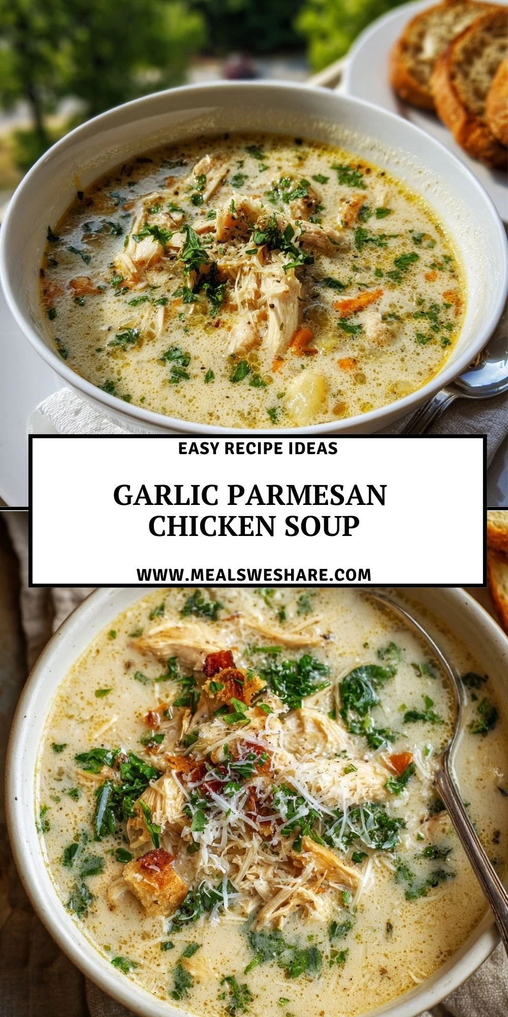 Keywords: garlic parmesan chicken soup, creamy chicken soup, easy dinner, comfort food, weeknight dinner, easy recipe, food ideas